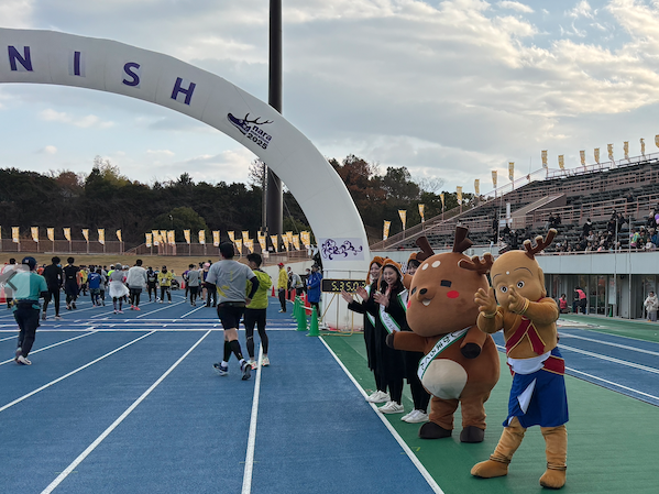 なんとかゴール! ゴール手前にはせんとくんに加えて、しかまろくん、もお出迎え!