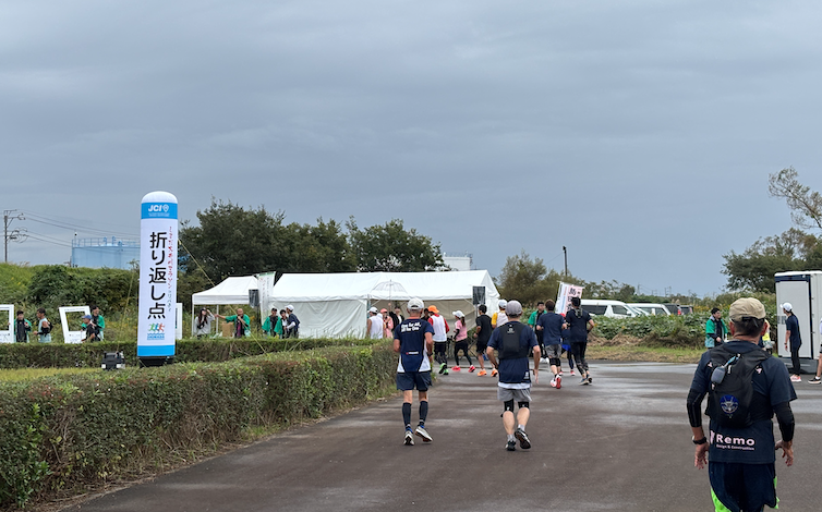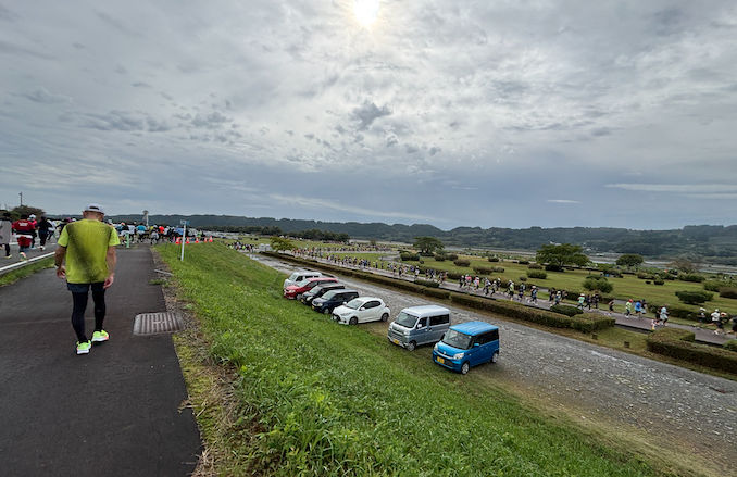 前日まで土砂降りの天気予報でしたが、当日は曇り空で気温も低くなく割と良い天候となりました。ただ、「雨が降るかも?」と思って雨カッパをぶら下げながら走ったのでこれは余計でした。