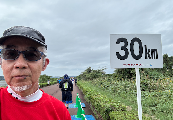 30km通過!もうかなり脚が無くなり、このあとは歩きながらなんとか前に進む感じ。。。